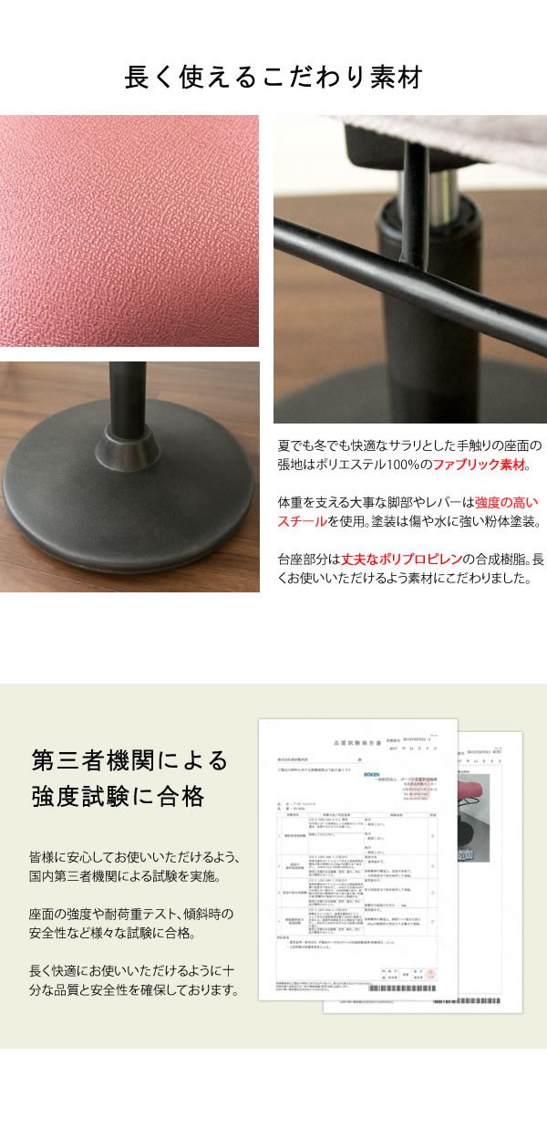 | ■材質 | ポリエステル、ウレタン、スチール(粉体塗装)、合成樹脂(ポリプロピレン) |