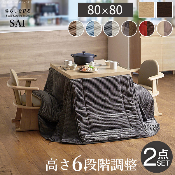 ダイニングこたつテーブル ハイタイプ コタツ 掛布団付き2点セット 高さ調節 デスク 机 おしゃれ ナチュラルモダン 500W薄型ヒーター 80cm