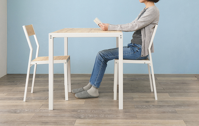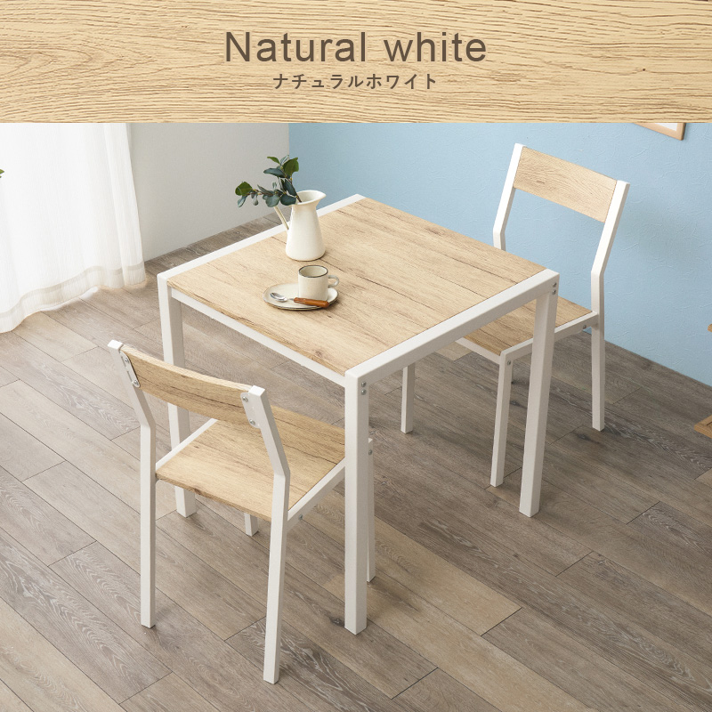 温かみのある木目調天板とアイアンフレームを組み合わせたダイニング3点セット。シンプルなデザインで、1〜2人暮らしにちょうどいいコンパクトなサイズ感。
