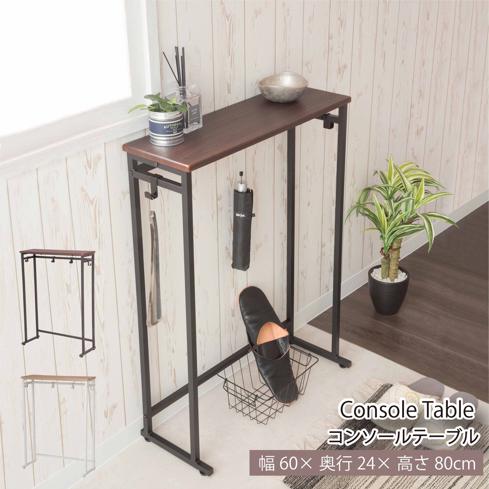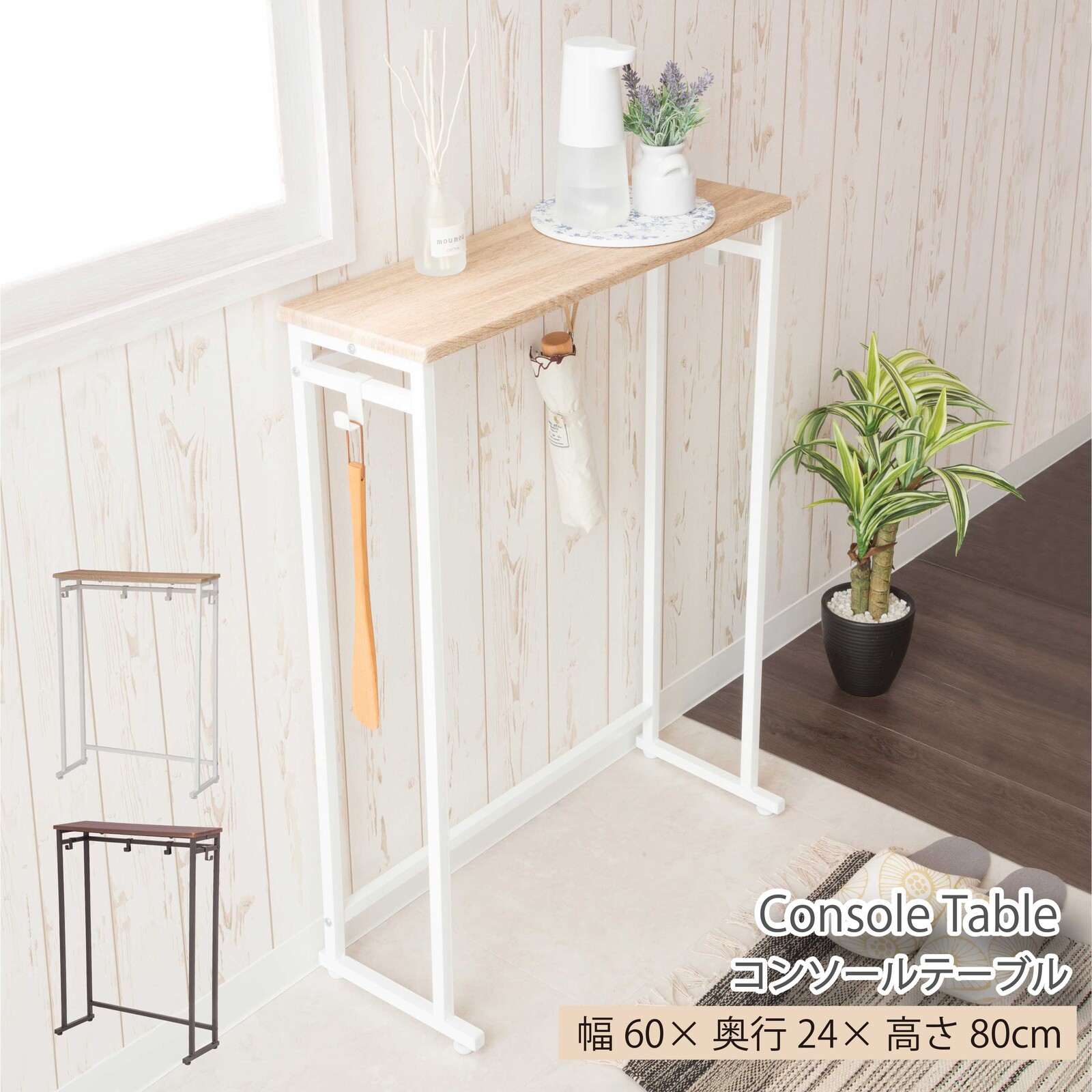 ・天板奥行はスリムな20cm、除菌グッズやキーケースなど、お出かけ前に必要なアイテムを置くの にぴったりです。