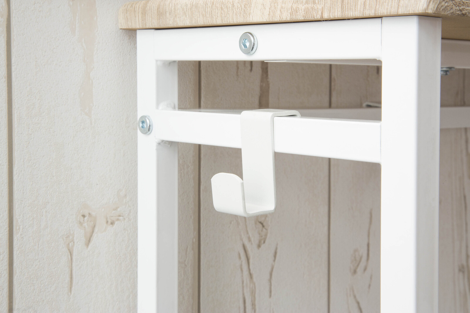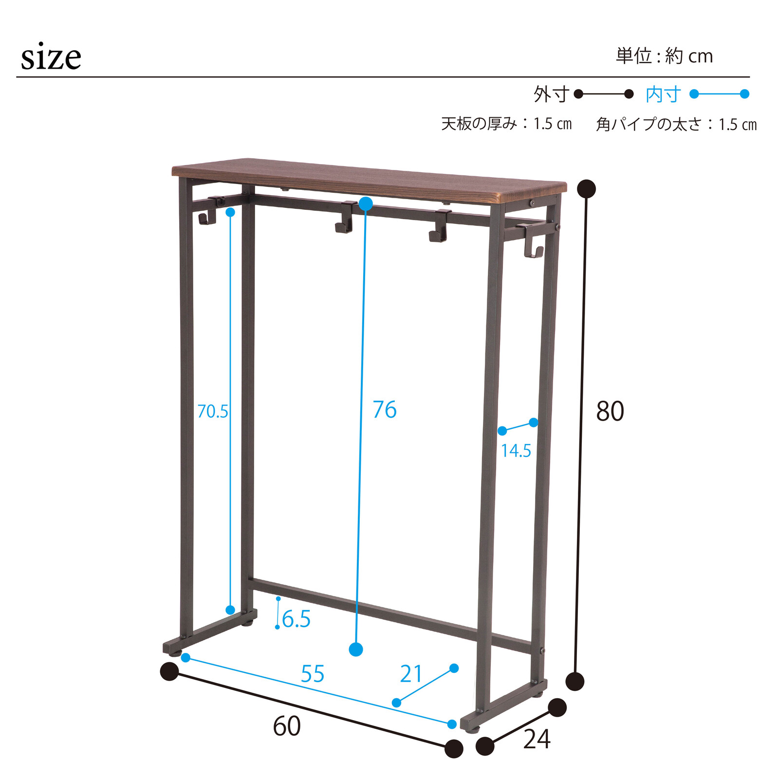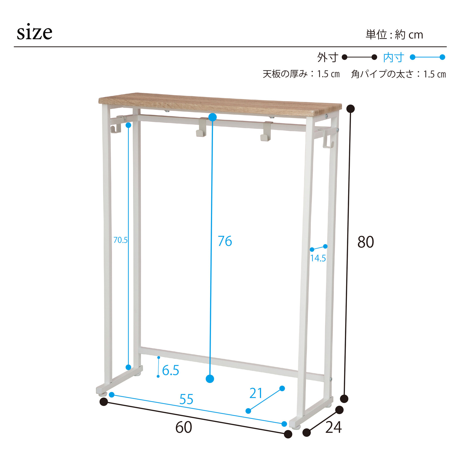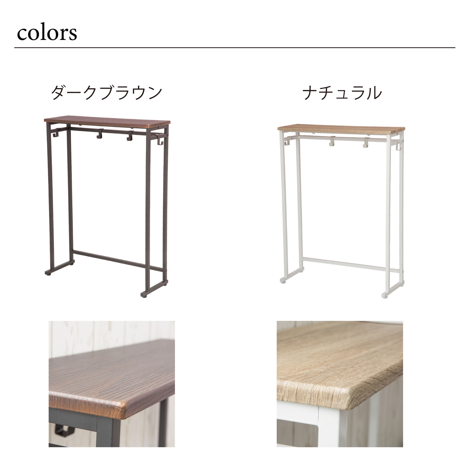 【材質】フレーム/フック:スチール(粉体塗装) 天板:合成樹脂化粧繊維板
