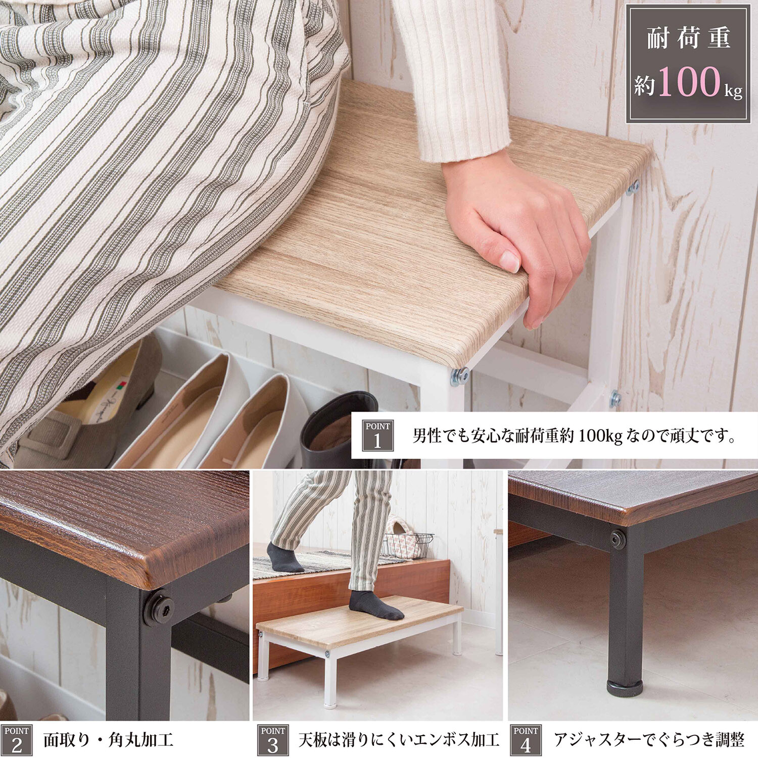 玄関台 踏み台 ベンチ 腰掛 ステップ 踏台 階段 エントランスチェア 介護 バリアフリー 耐荷重100kg 2点セット