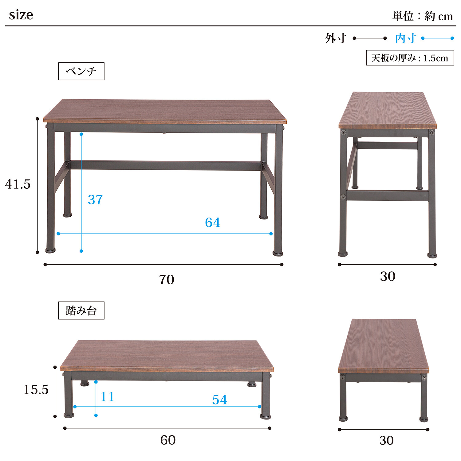 【サイズ】ベンチ:幅70×奥行30×高さ41.5cm 踏み台:幅60×奥行30×高さ15.5cm