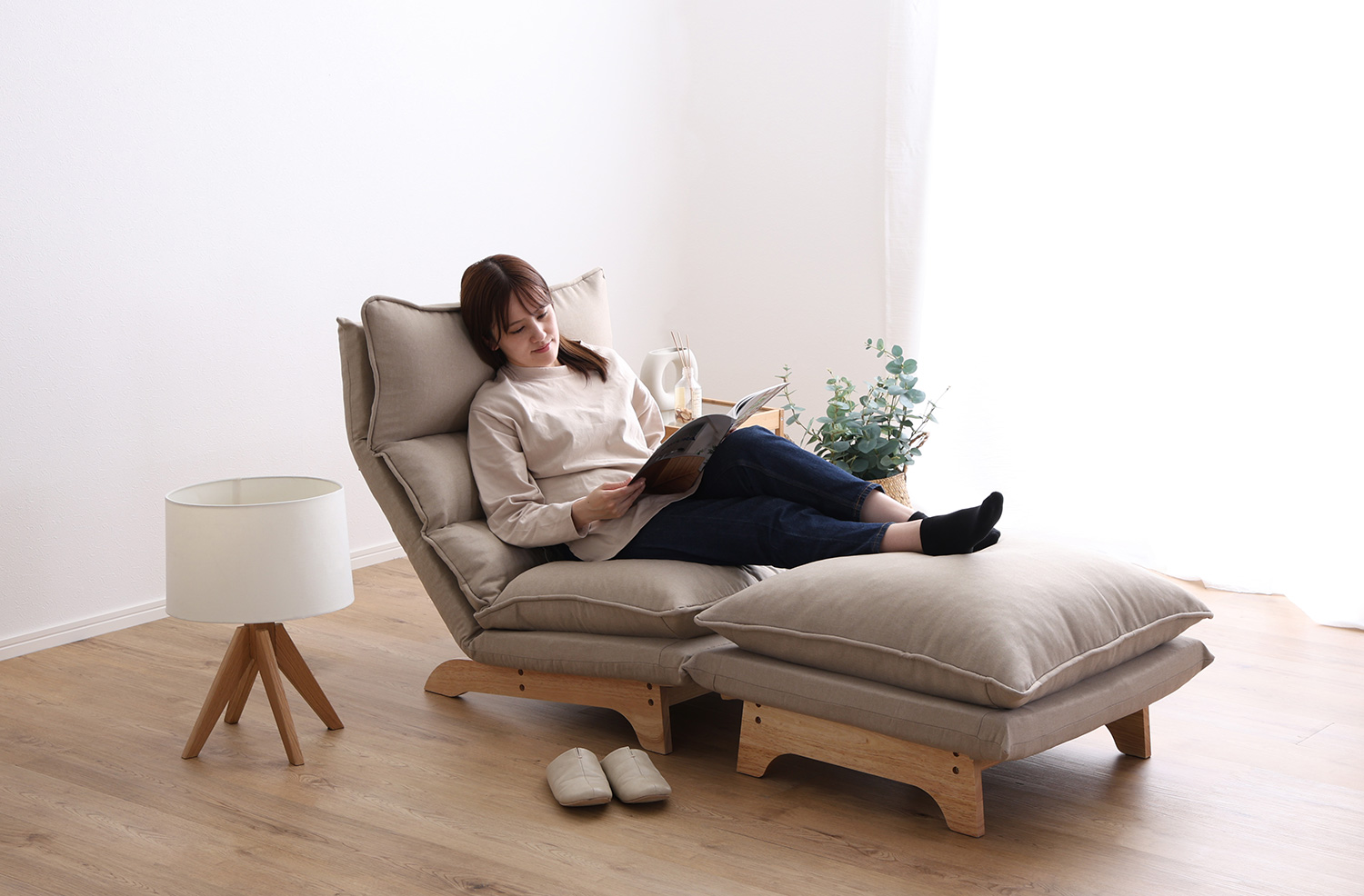 背もたれだけでなく、頭部分にもリクライニング機能が付いているので、お好きな角度で使用いただけます。