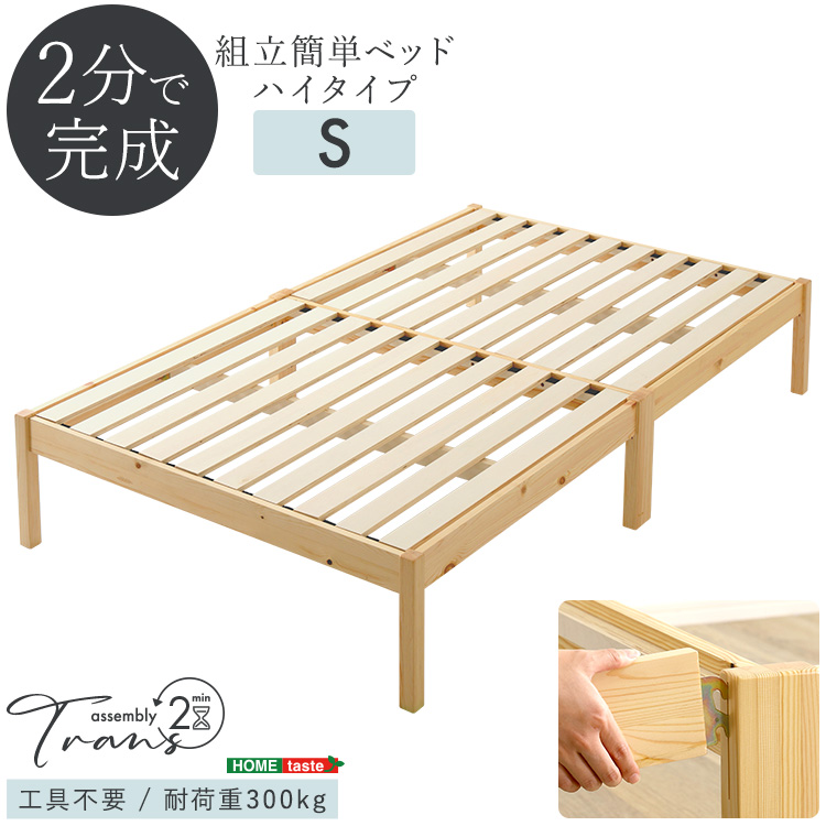 ベッド シングル 工具不要 組立簡単 スノコ 頑丈 おしゃれ ベット すのこ 木製 耐荷重300kg 2分で完成 ハイタイプ