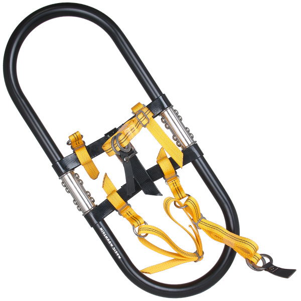 2通りの締め付けが可能なクロスベルトは堅牢な二重リングの固定式で破損の心配が少ない。