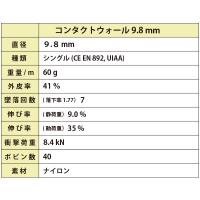 『コンタクト ウォール 9.8 mm』はジムで使用するためにデザインされたシングルロープです。ジムでの使用に適した長さにより、嵩張らず軽量なため持ち運びしやすく、また岩場用のロープと使い分けることができます。軽さと耐久性のバランスに優れ、様々な使い方ができます。高いグリップ性と操作性により、扱いやすく、ビレイデバイスとの併用に適しています。厚い外皮により高い耐久性を有しています。