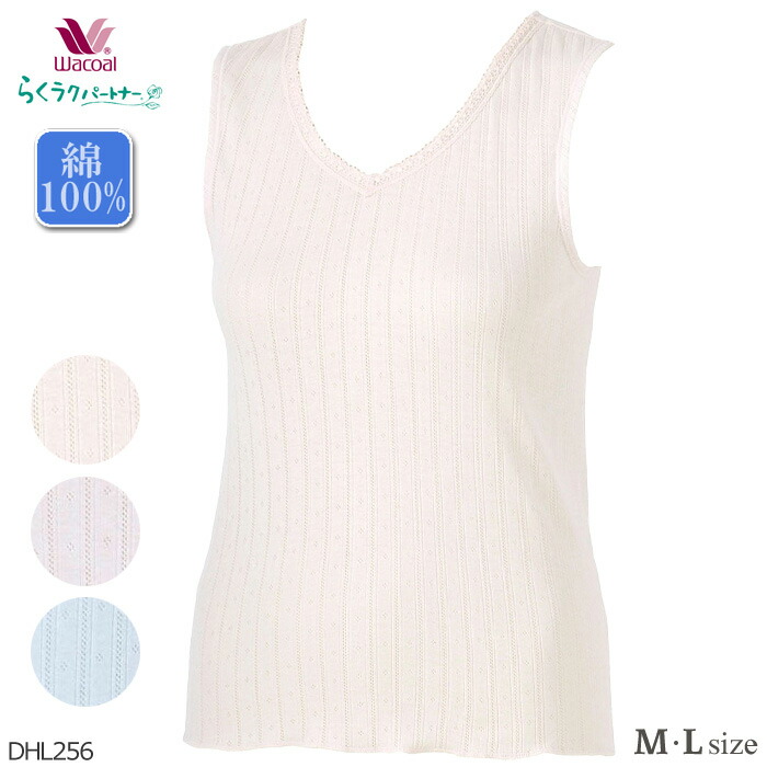 ワコール Wacoal らくラクパートナー (M・Lサイズ)涼感肌着 タンクトップ 身生地綿100% インナーウェアメール便1点まで DHL246の後継品 DHL256 【P】