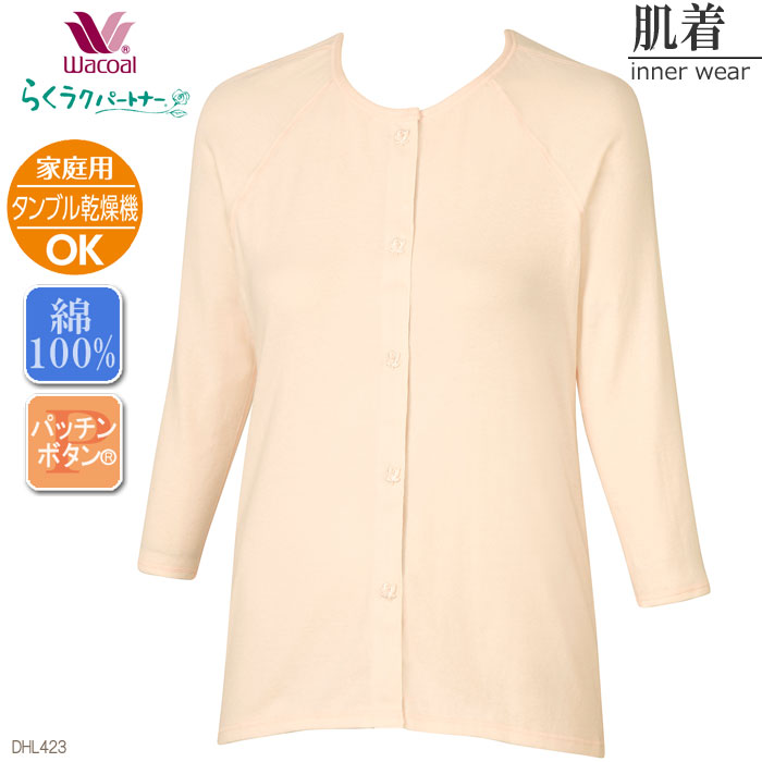 タンブル乾燥機対応メール便可 ワコール Wacoal トップス 8分袖 綿100%(S・M・Lサイズ)肌着 らくラクパートナー 敬老の日 メール便1点まで DHL423 【P】