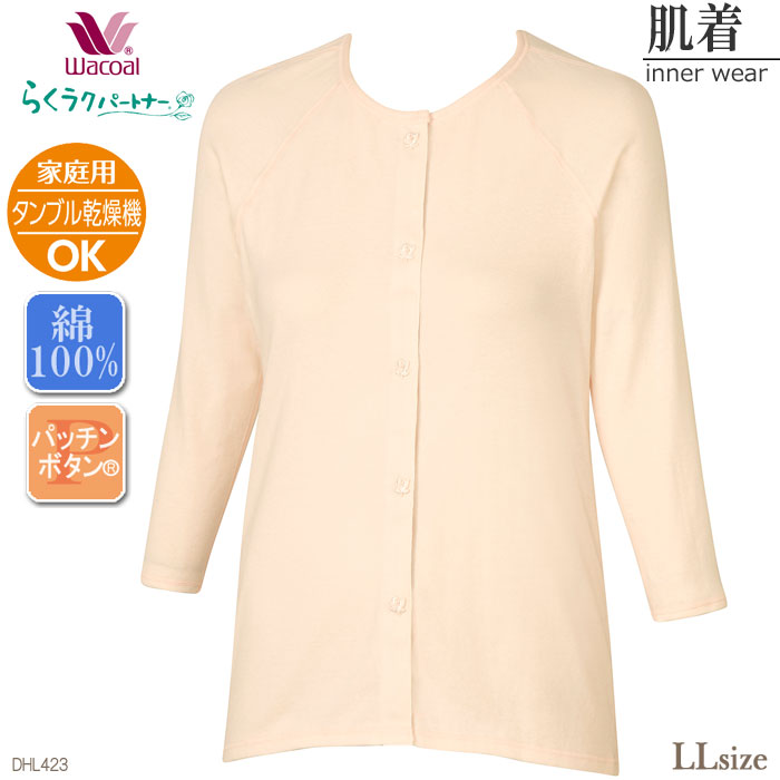 タンブル乾燥機対応メール便可 ワコール Wacoal トップス 8分袖 綿100%(LLサイズ)肌着 らくラクパートナー 敬老の日 メール便1点まで DHL423 【P】