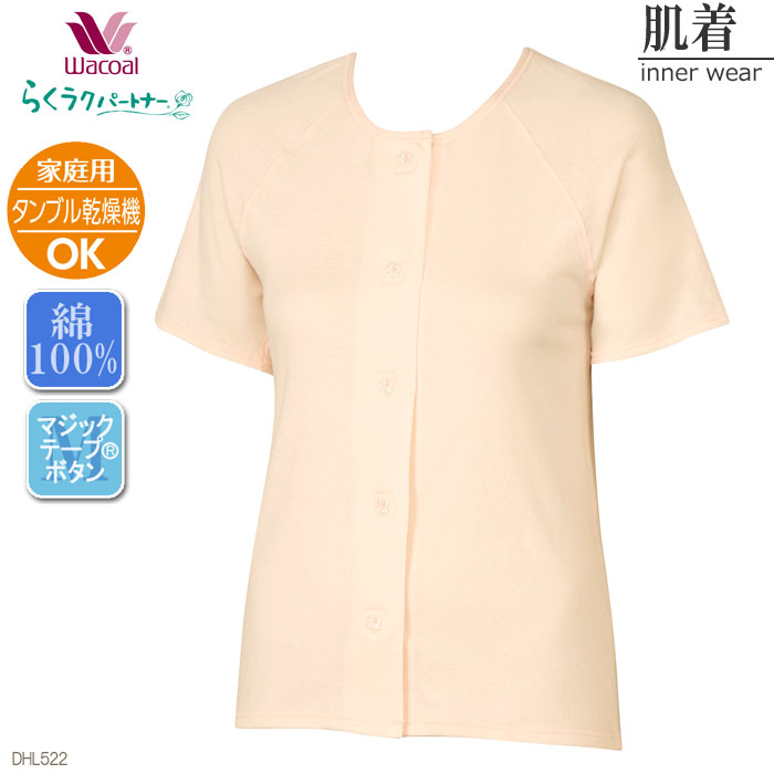 タンブル乾燥機対応メール便可 ワコール Wacoal トップス 3分袖 綿100%(S・M・Lサイズ)肌着 らくラクパートナー 敬老の日 メール便1点まで DHL522 【P】
