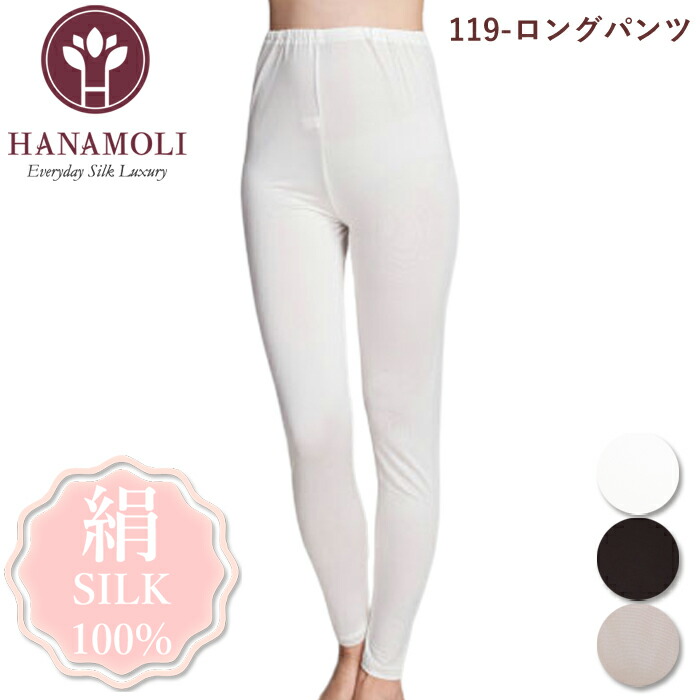ロングパンツ HANAMOLI (S・M・L・LL) シルク100% レディース 絹 ボトムインナー下着 肌着 メール便1点まで 母の日 119