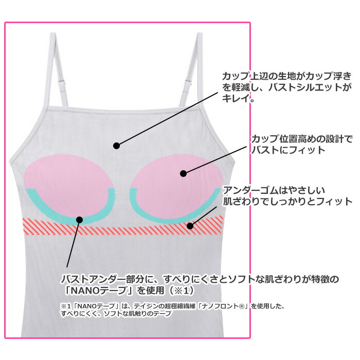 バストアンダー部分に、“すべりにくさ”と“ソフトな肌ざわり”が特徴の超極細繊維を使用した「NANOテープ」で、カップがズレ上がりにくい