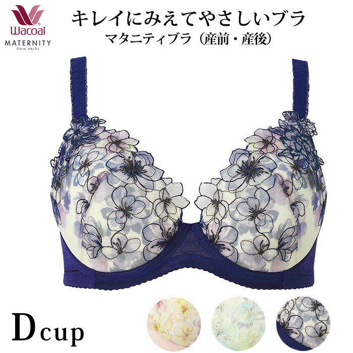 ●バストの変化に対応して快適にサポートする、授乳機能のついた産前・産後兼用ブラジャー。伸縮性のあるカップを使用し、産前から産後までのバストボリュ−ムの変化に対応します