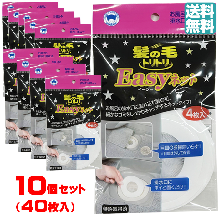 P2倍【10個セット40枚入り】髪の毛トリトリ Easyネット4枚入 【送料無料】 ボンスター 掃除 髪 髪の毛 風呂 浴室 バス 排水口 排水溝