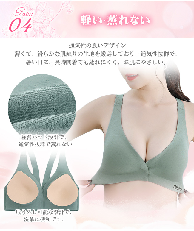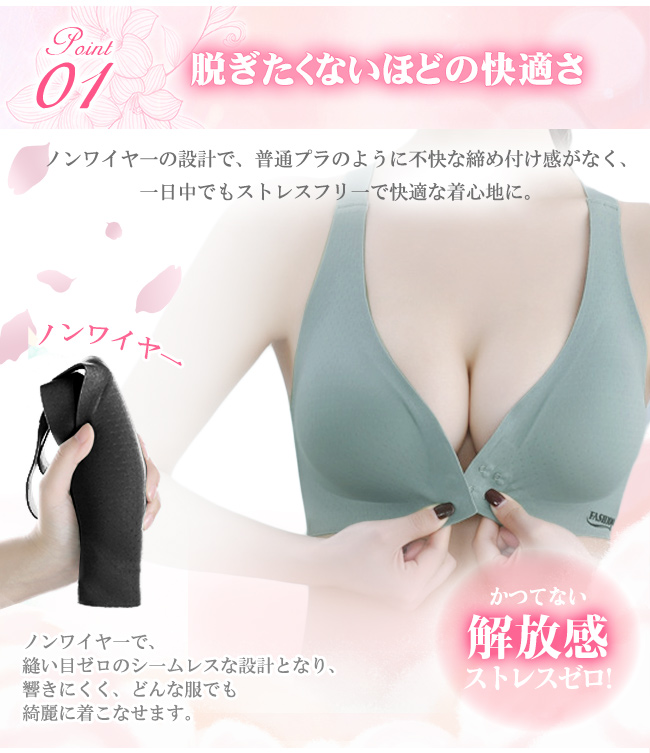 【2点目半額クーポン!】24時間使える ナイトブラ フロントホックブラ ブラジャー ノンワイヤー シームレス 美胸 パッド付き 取り外し可能 インナー 下着 爆買