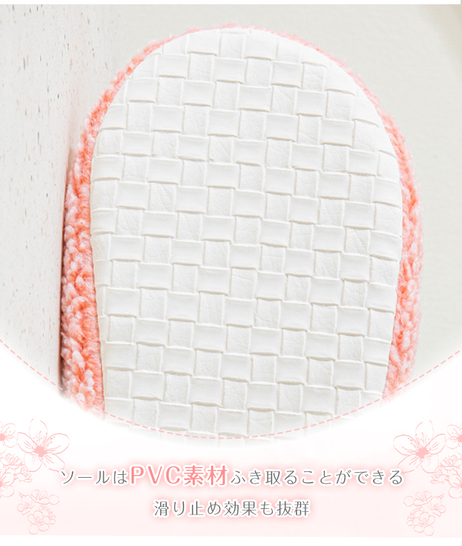 PVC素材のソールは凸凹加工で滑りにくく、底冷えもガードしてくれます。