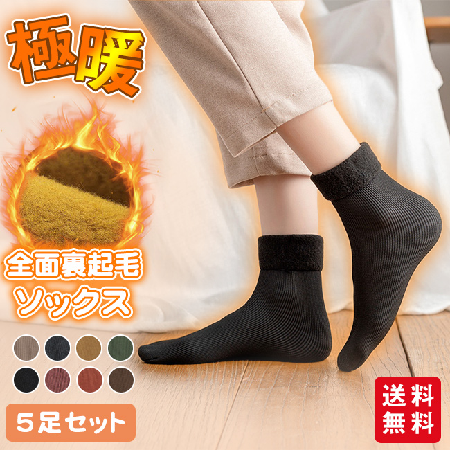 靴下 裏起毛 ソックス 5足セット 暖かい ポカポカ あったか 防寒 ルームソックス レディース 男女兼用 もこもこ 冷え性対策 冬 可愛い 爆買