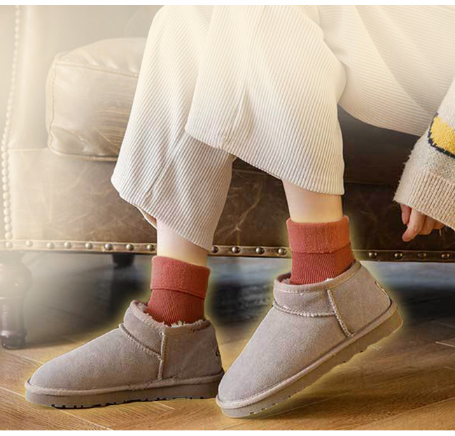 ・伸縮性のある厚手の素材、足の形にほどよくフィット。