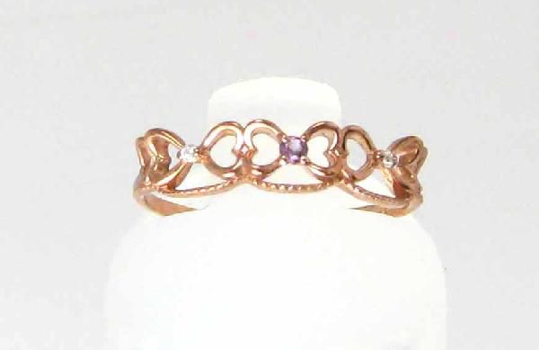 ダイヤモンド ロードライトガーネット リボン ピンキーリング K18PG ピンクゴールド ミル打ち
