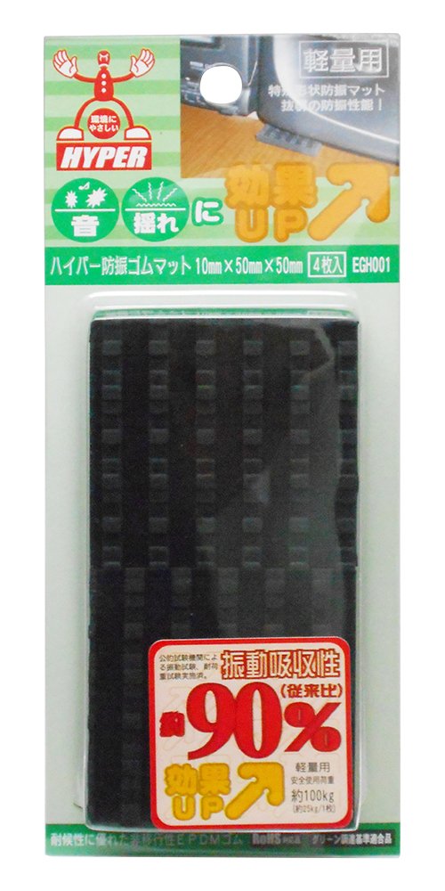 和気産業(Waki Sangyo) ハイパー防振ゴムマット 10mmX50mmX50mm 洗濯機 滑り止め 振動吸収 EGH001 4枚入