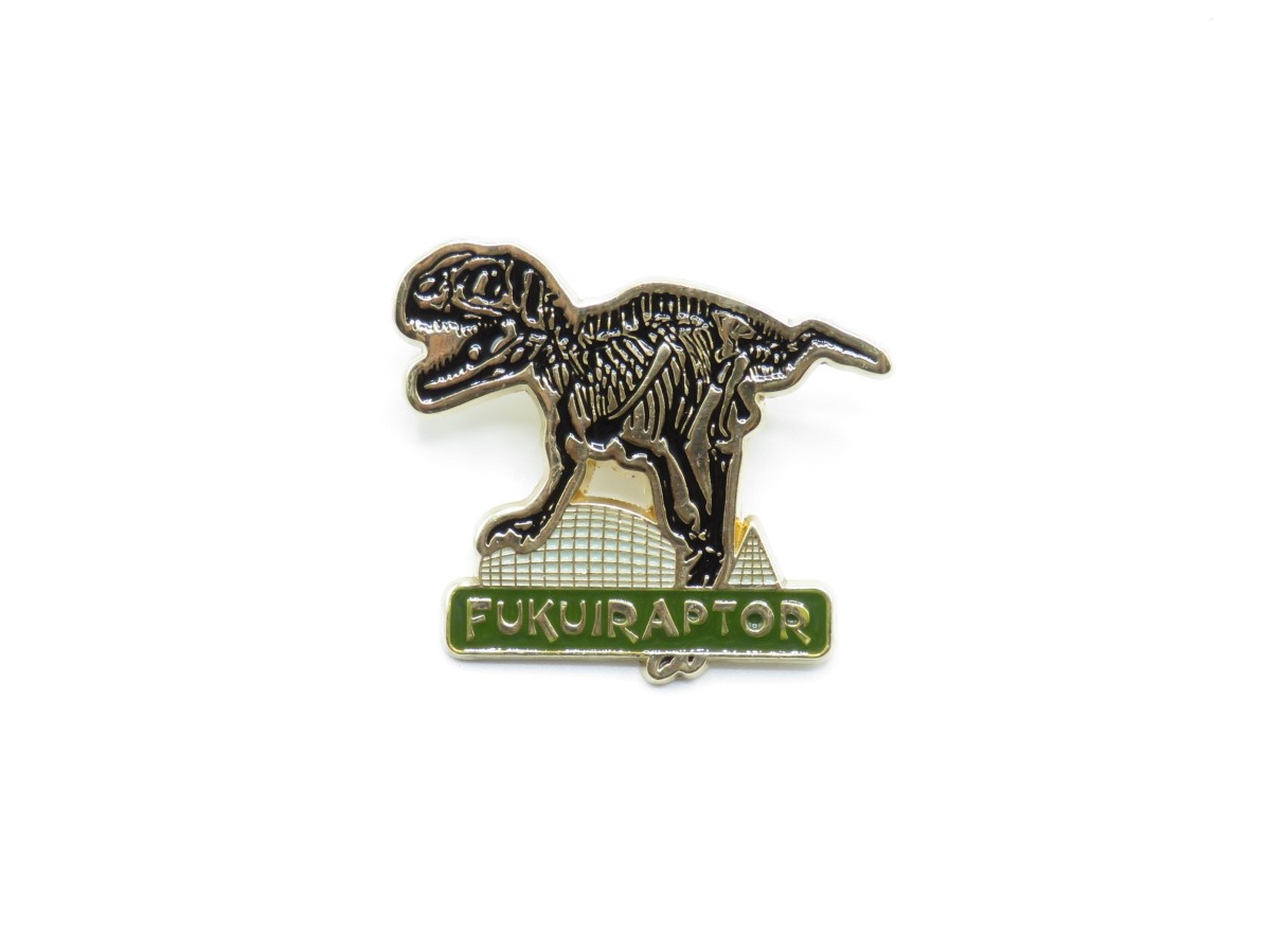 福井県で発見されたフクイラプトルの骨格デザインのピンバッジです。