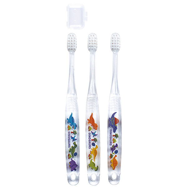 恐竜 クリア歯ブラシ 3本セット 園児用 ディノサウルスピクチャ| 抗菌 食洗機対応 子供 キッズ ハブラシ 虫歯用 ケア DINOSAURS PICTURE BOOK スケーター