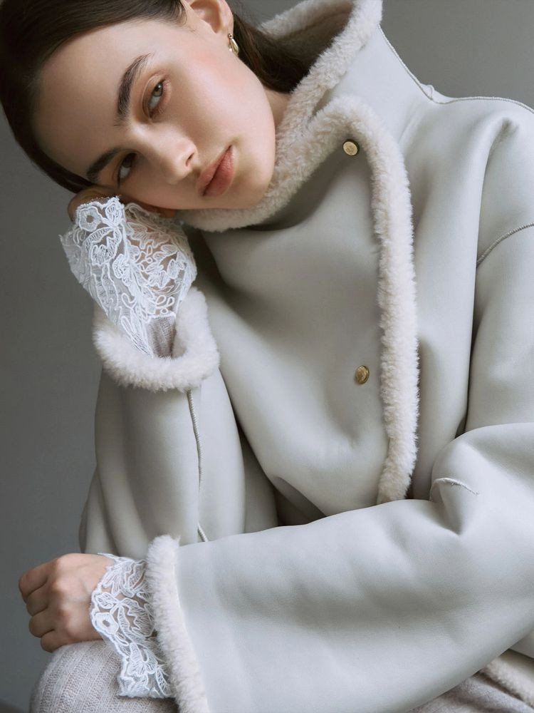 袖内側にもダーツを施しさりげないコクーンシルエットにしています。