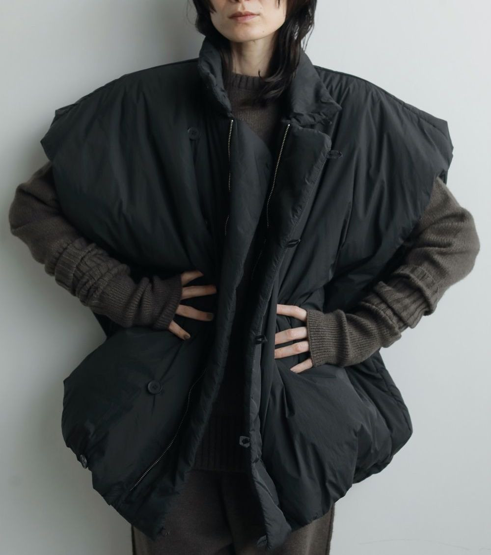 ふっくらと丸みのあるオーバーなシルエットが可愛い中綿ベスト。太巾の前立てとボタンディテールもポイント。裾はゴムコード入りで、お好みのバランスに調節していただけます。寒くなり過ぎない真冬前の羽織として、気温に合わせたレイヤードスタイルで長く着回したい一枚。車移動が多く、しっかりとしたコートやジャケットよりもラフに羽織れるベストが活躍することが多い方にも、おすすめ。室内で暑くなりがちなショッピングモールなどへの車でのお出かけにもピッタリ。ふんわりとしたボリュームがコーディネートに映え、手抜き感なくお洒落見えします。