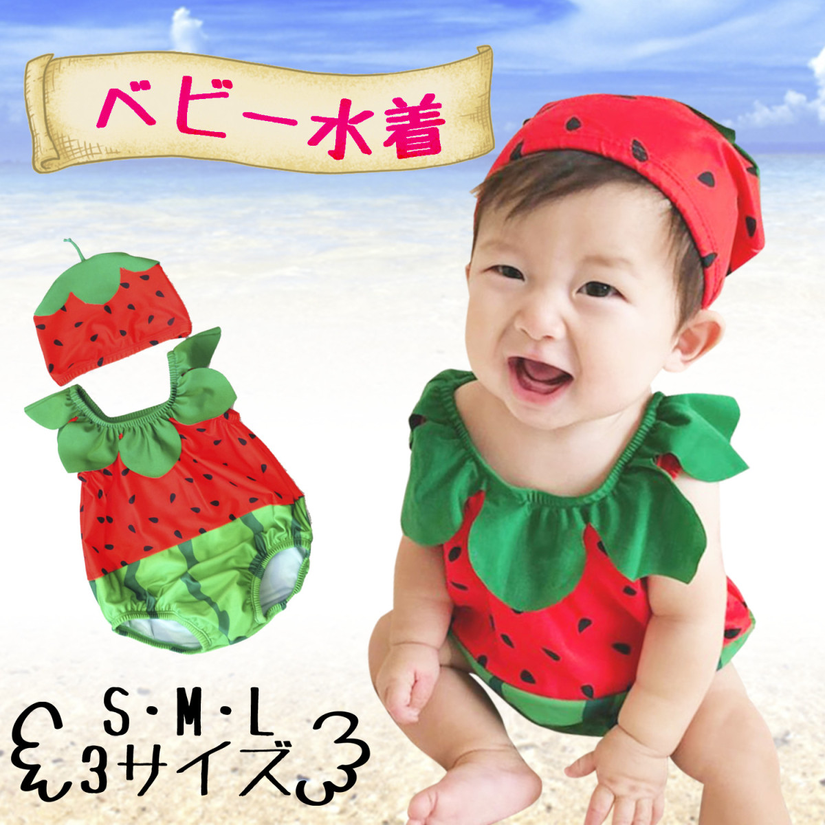 ベビー水着 ベビー 水着 赤ちゃん キッズ 子供 水着80 男 女 70 80 90 女の子 男の子 ワンピース スイカ 帽子 帽子付き /幼児用水着スイカ