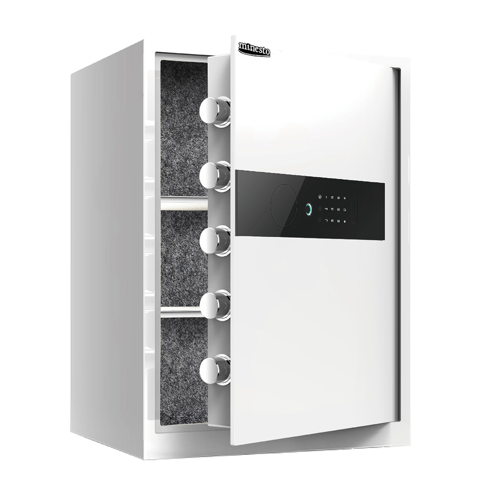 金庫 指紋 60cm ホワイト 保管庫 緊急キー テンキー式 盗難防止 防犯 家庭用 小型 業務用 店舗用 ホテル 旅館 振動警報 壁付け アンカーボルト付き