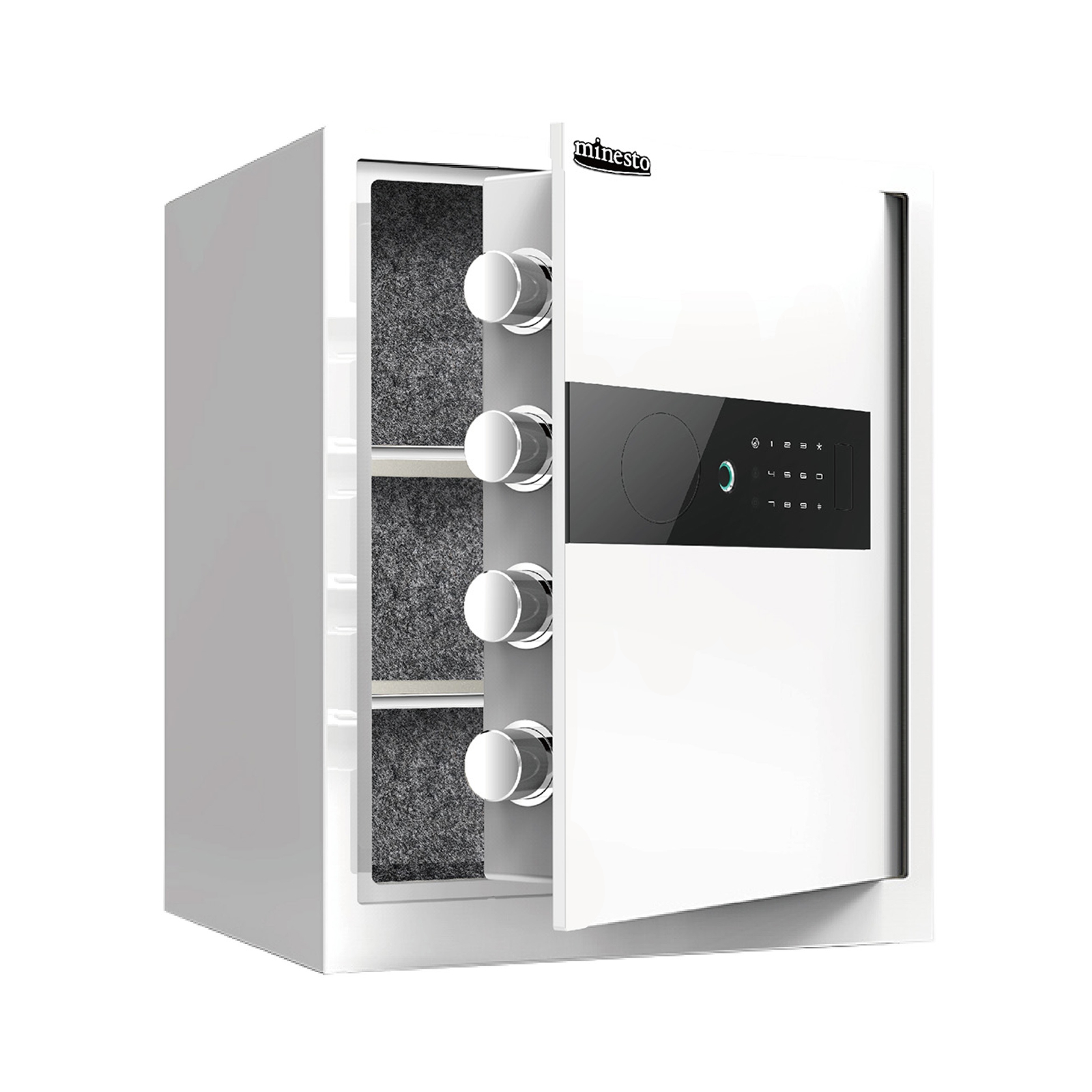 金庫 保管庫 指紋 緊急キー テンキー式 盗難防止 防犯 家庭用 小型 業務用 店舗用 ホテル 旅館 振動警報 壁付け アンカーボルト付き 45cm ホワイト