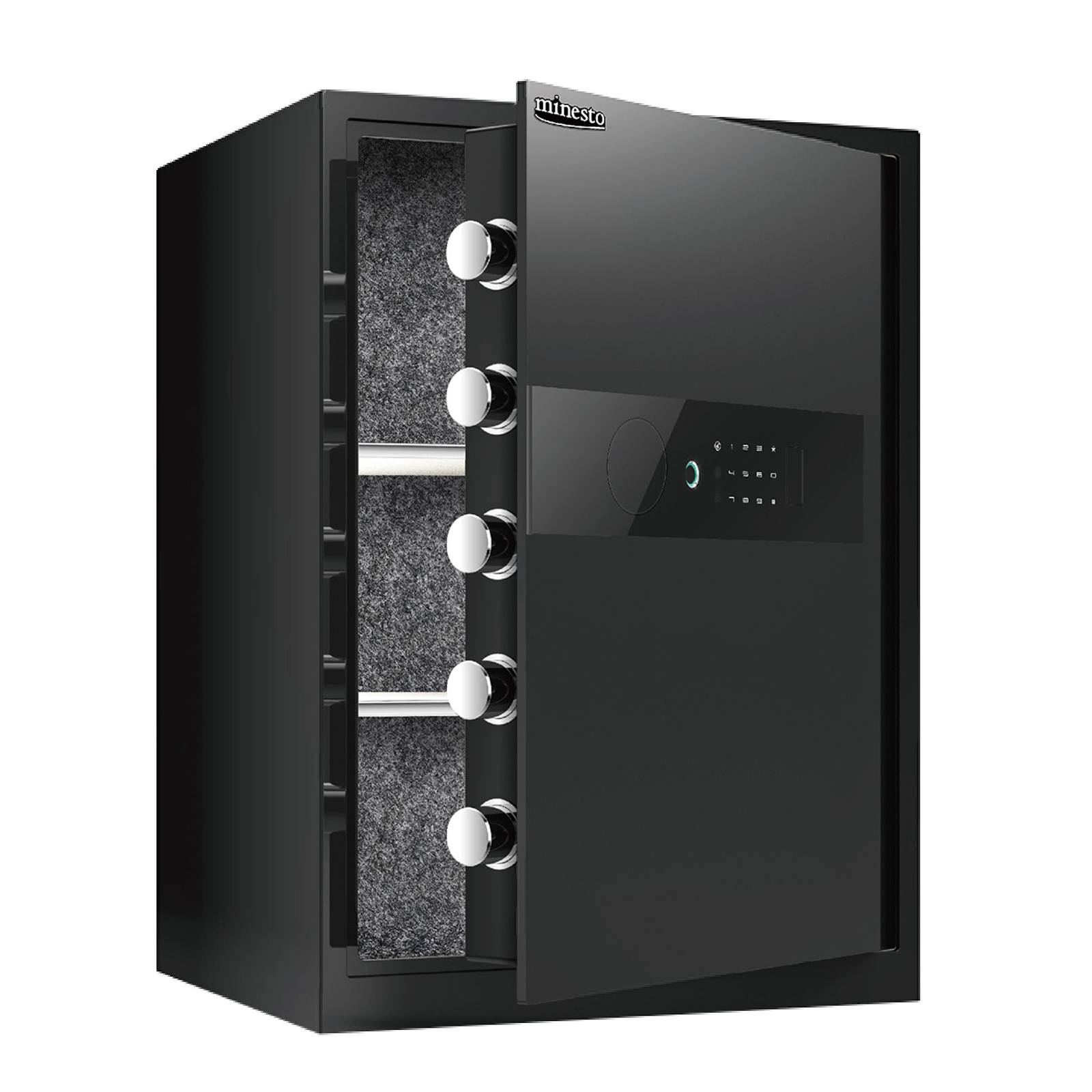 金庫 保管庫 指紋 緊急キー テンキー式 盗難防止 防犯 家庭用 小型 業務用 店舗用 ホテル 旅館 振動警報 壁付け アンカーボルト付き 60cm ブラック