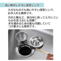 【洗いものをするのに便利】 洗い物がしやすい深型シンクなので、大きめなものでもすっぽりと収めることができます。水が飛び散りにくいので、洗面所や台所では土汚れや水跳ねが気になって洗いにくいものも気兼ねなく洗えます。お庭やビニールハウスの中でも立って作業ができて腰や膝が痛くなる心配もありません。