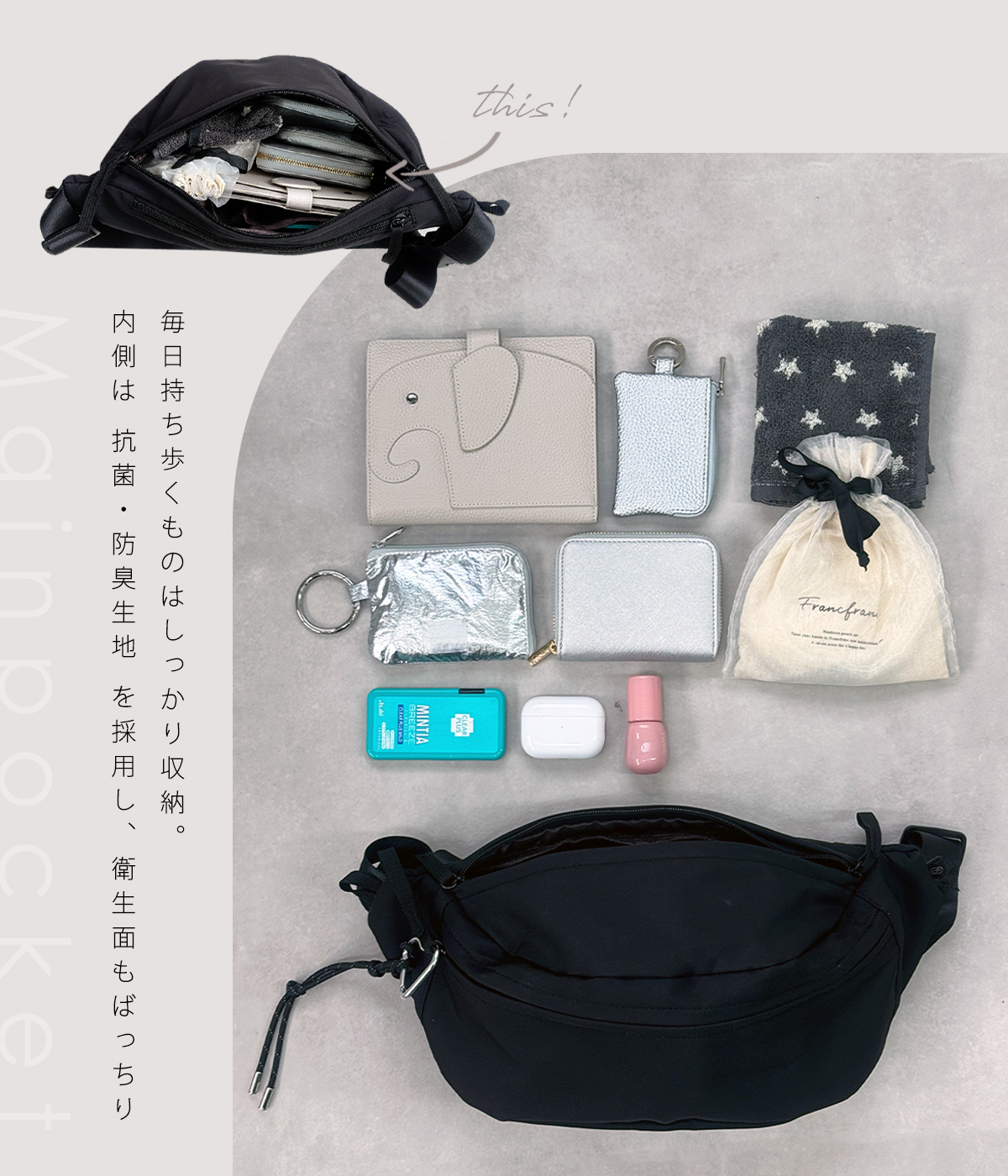 アルコールスプレーやウェットティッシュ、ハンカチなどを入れておくのにぴったりです。