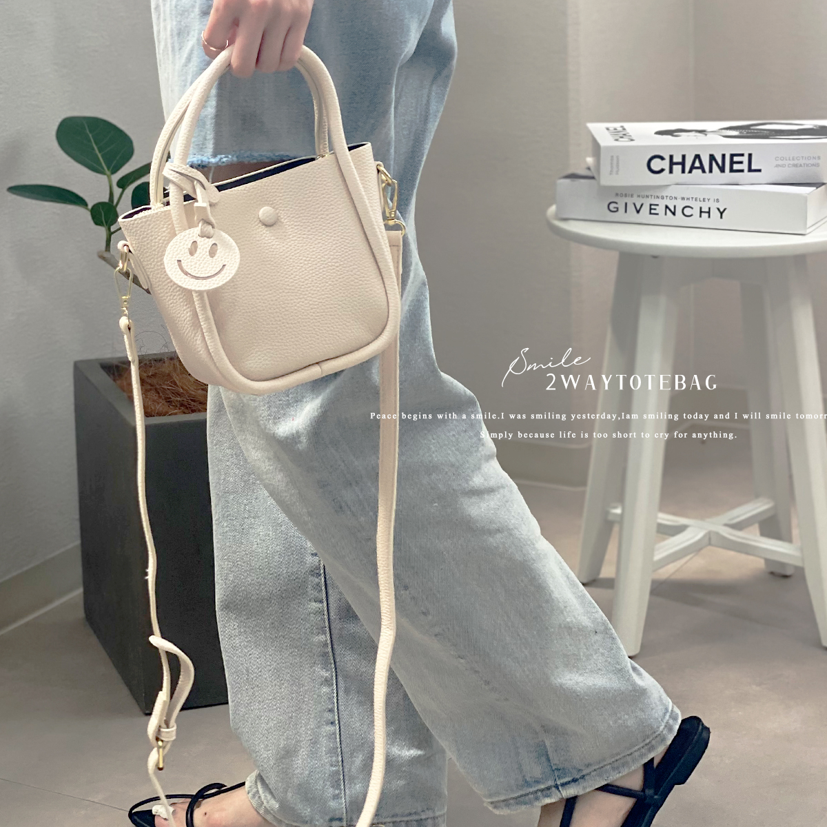 スマイルチャーム付き2WAYミニトート。
