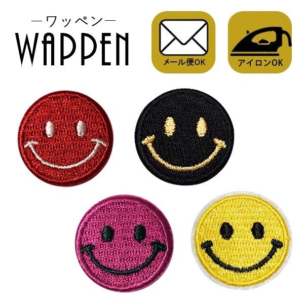 ミニ スマイル ワッペン 刺繍 アイロン おしゃれ アップリケ smile ニコちゃん にこちゃん メール便 爆買