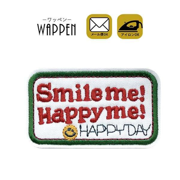 スマイル ワッペン 刺繍 アイロン おしゃれ アップリケ smile ニコちゃん にこちゃん 縦4.7cm×横8cm メール便 爆買