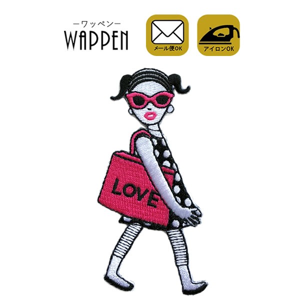 ガール ワッペン 刺繍 アイロン おしゃれ アップリケ 女の子 キャラクター 縦10cm×横5cm メール便 爆買