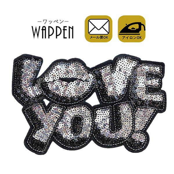 ワッペン スパンコール アイロン おしゃれ アップリケ LOVE YOU! キラキラ 縦9.5cm×横15cm メール便可
