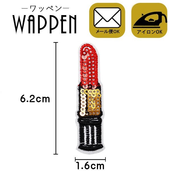 ワッペン スパンコール アイロン接着可能 縦6.2cm×横1.6cm 口紅 リップ 手作り 手芸 バッグやiPhoneケースをオリジナルに ハンドメイド メール便 爆買