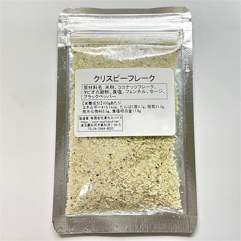 【原材料名】ライスペーパー(ベトナム)食塩、ココナッツフレーク、タピオカ澱粉、フェンネル、セージ、ブラックペッパー