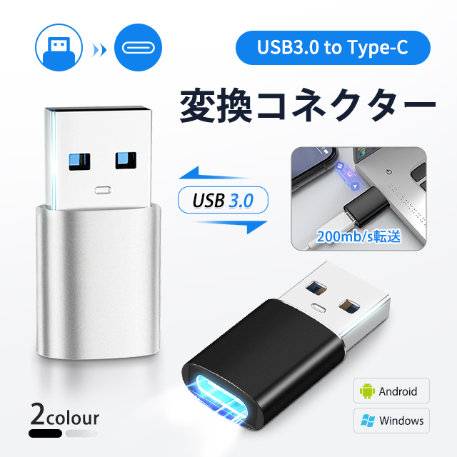 USB-AをType-Cに変換するアダプタ。スマホやタブレットの充電はもちろん、パソコンなどへのデータ転送も出来る変換アダプタです。