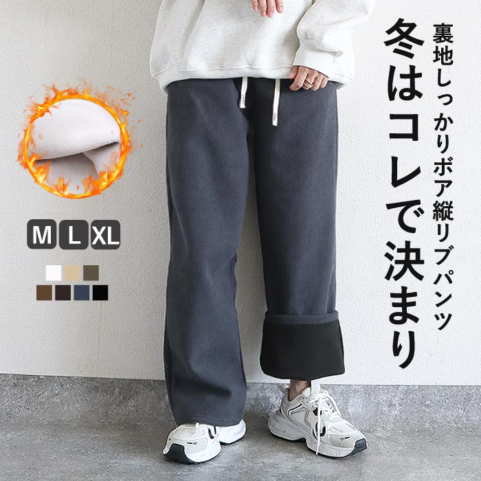 パンツ 裏起毛 レディース ストレート コーデュロイ 極暖 暖かい 裏ボア ボア 縦リブ ウエストゴム 紐付き あったか 防寒 楽ちん 大きいサイズ レディース メンズ ユニセックス 男女兼用 オーバーサイズ M L XL 秋 冬 白 黒 おしゃれ 体型カバー 無地 シンプル 40代 30代 50代 60代 大きいサイズ ゆったり 大人 カジュアル かわいい SALE セール uricca ウリッカ うりっか ポイント利用