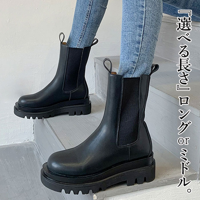 ブーツ サイドゴア 厚底 レディース 秋 冬 シューズ ショート ミドル 黒 おしゃれ かわいい 30代 40代 50代 長靴 ^bo-698^