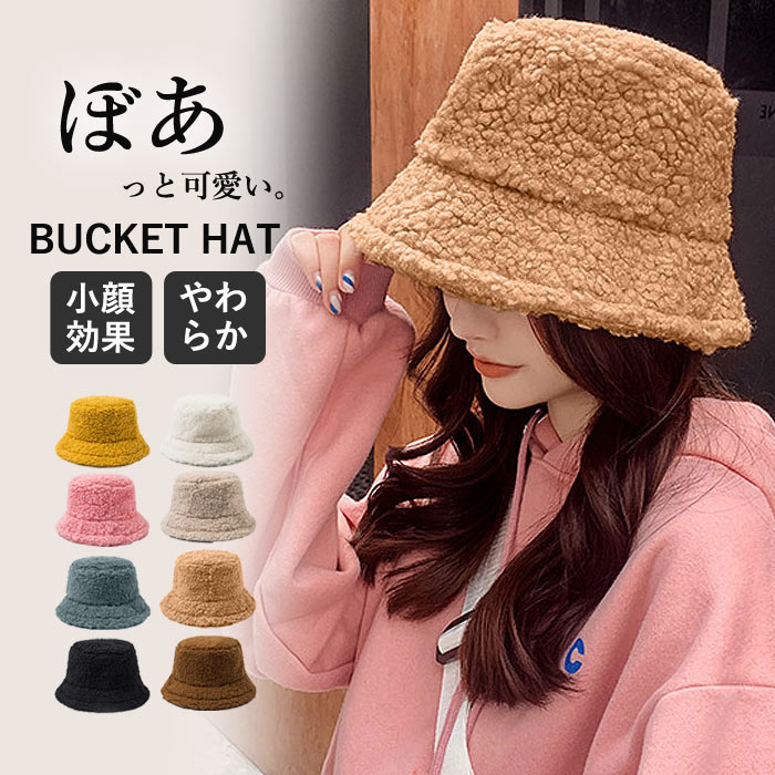 876円 クーポンで! バケットハット バケハ ボア 帽子 レディース 秋 冬 黒 白 おしゃれ ハット ファー あったか 防寒 小顔 極暖 [定形外3]^msz155^