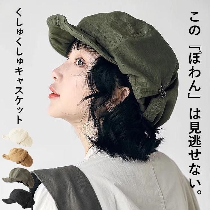 帽子 レディース キャスケット キャップ 春 夏 秋 黒 おしゃれ くしゅくしゅ ぽわん 調節可 コットン100% 綿100% ボリューム シンプル 40代 30代 50代 60代 大きいサイズ ゆったり 大人 カジュアル かわいい きれいめ ポイント利用 SALE セール uricca ウリッカ うりっか