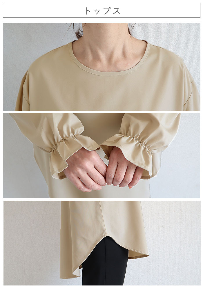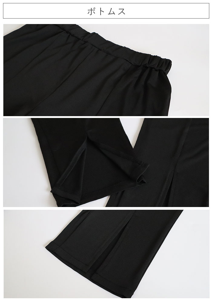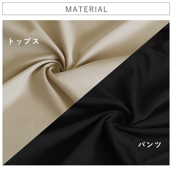 | 素材 | トップス:ポリエステル97%・スパンデックス3% ボトムス:ポリエステル90%・スパンデックス10% |