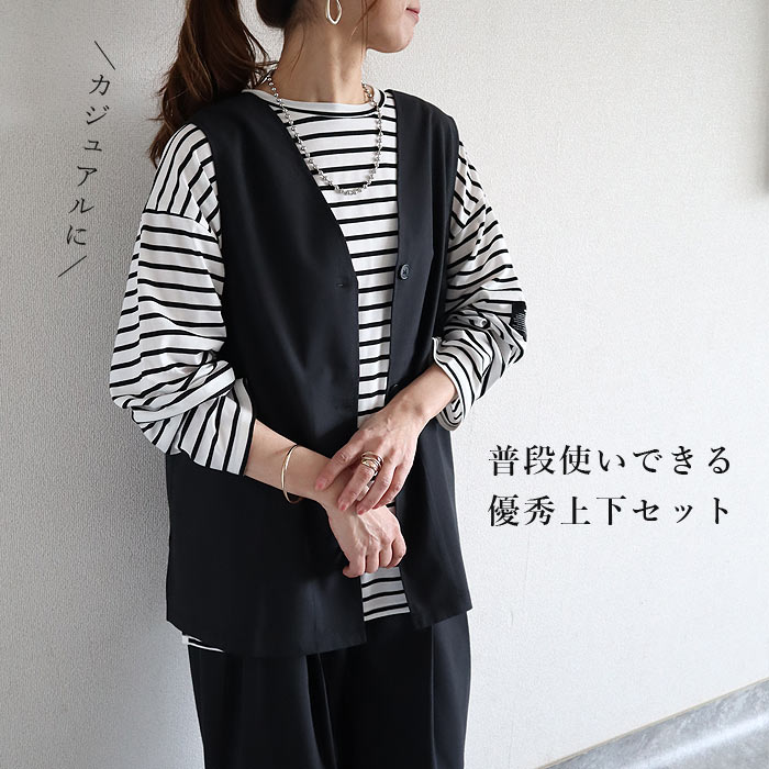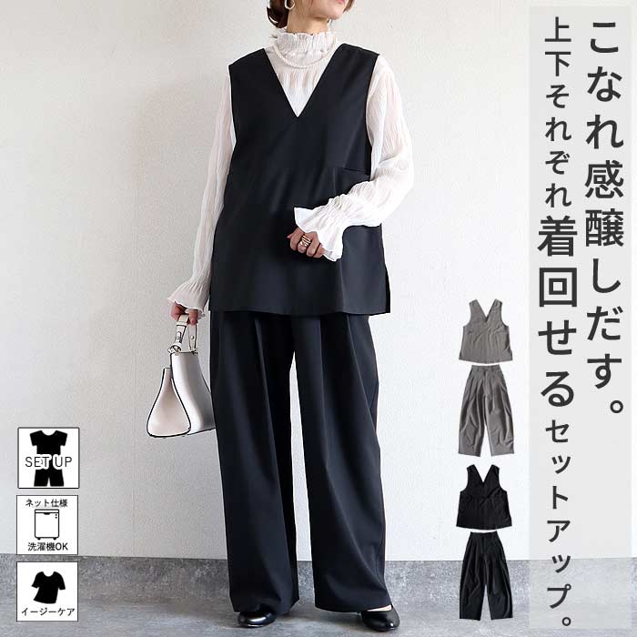 | 検索用 | スーツ レディース 上下セット セットアップ 春 夏 黒 黒色 ブラック 灰色 グレー チャコール ノースリーブ 無地 おしゃれ 楽ちん トップス ボトムス ロングパンツ シンプル 40代 30代 50代 60代 M L XL 大きいサイズ ゆったり 大人 カジュアル かわいい きれいめ SALE セール uricca ウリッカ うりっか |