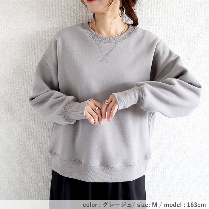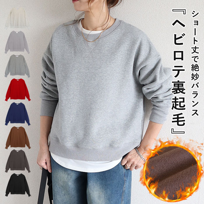 トップス レディース トレーナー 秋 冬 白 黒 おしゃれ 長袖 スウェット Uネック ショート丈 リブ 裏起毛 暖か 極暖 あたたかい 体型カバー シンプル 袖リブ 裾リブ 可愛い 送料無料 40代 30代 50代 60代 大きいサイズ ゆったり 大人 カジュアル かわいい きれいめ SALE セール uricca ウリッカ うりっか